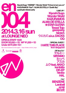 「en004」Kiyoshi Sugo “WIZMIZ” / Wonder World “I’d love to turn you on” / KAZURAMOS “Surf” / ALMA DE STELLA “Zenith Sky” quadruple release party
